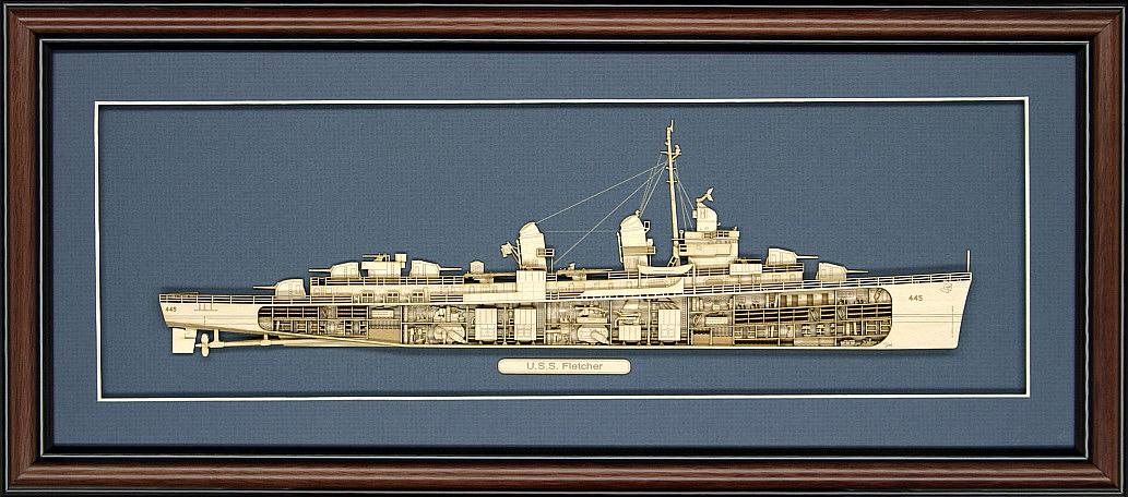 With 176 destroyers in the class, the Fletcher is one of the most recognizable ships of the war. From the boilers to the bunks and control panel, this cutaway contains a staggering amount of detail. Even the rails have been cut out.