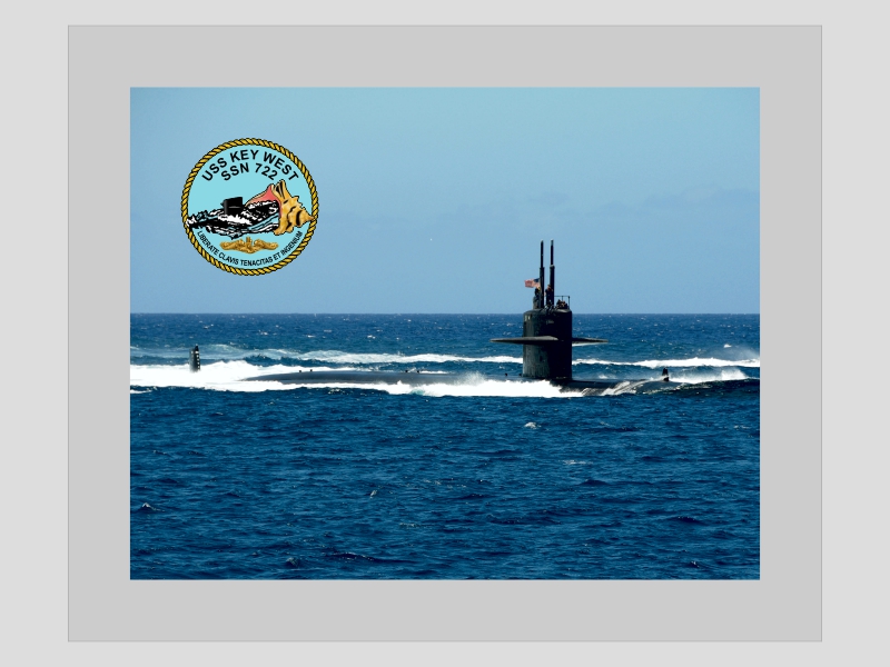 Our USS Key West (SSN-722) canvas print is a perfect choice for the wall of fame. We start with a 600 denier marine grade canvas and fuse high-density inks directly into the fabric for a permanent and durable print which is waterproof and will never flake. The images have been fully color balanced, scratches removed and our exclusive insignia art is placed in a generous 4” size rather than the thumbnail you may be used to.
