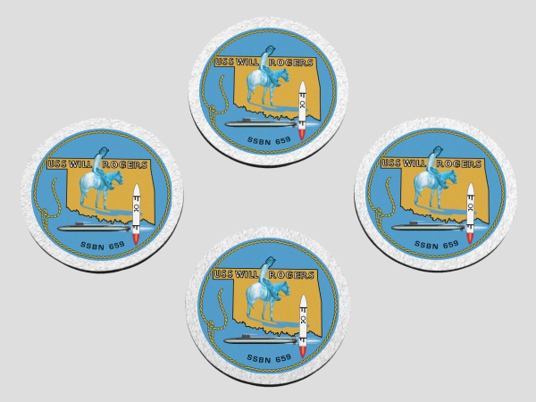 The USS Will Rogers (SSBN 659) insignia coaster set is not the typical scan of a patch. We have taken the original graphic and completely re-drawn the insignia from scratch. Careful attention has been taken to accurately create this new exclusive artwork in brilliant color at the highest quality possible.