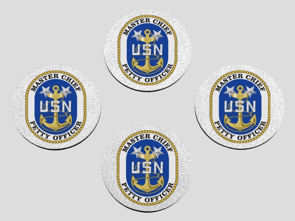 The Master Chief Petty Officer (MCPO) coaster set is not the typical scan of a patch. We have taken the original graphic and completely re-drawn the insignia from scratch. Careful attention has been taken to accurately create this new exclusive artwork in brilliant color at the highest quality possible.