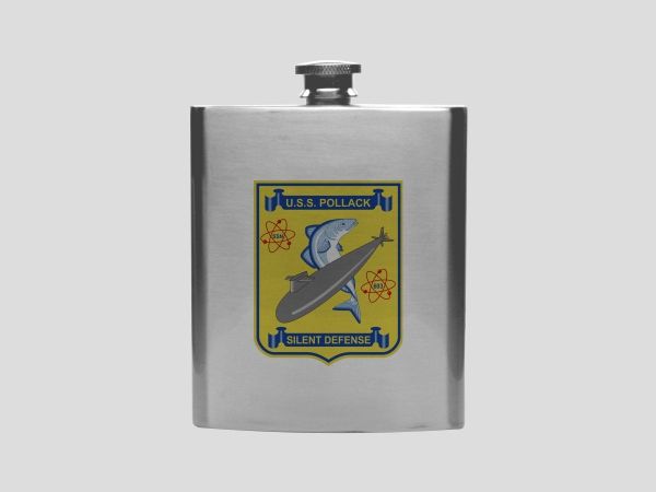 Our exclusive SSN 603 USS Pollack Insignia Flask is far more than a simple scan of a patch. We have completely redrawn and restored the insignia from scratch. Careful attention has been taken to accurately create this new exclusive artwork in brilliant color at the highest quality possible. You won't believe the clarity of the image.
