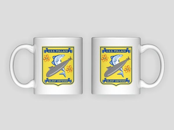 Unlike other submarine coffee mugs, this not a scan of a patch. We have completely redrawn and updated the USS Pollack (SSN 603) insignia from scratch. The result of our work is an image that is sharp, crisp and full of color on these handsome 11 ounce Coffee Mugs.