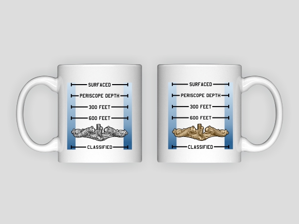 A funny way not to say on these 11 ounce submarine Coffee Mugs. If you sport one of these mugs, be prepared for the obvious question. Comes with your choice of silver or gold dolphins and our dolphins are the most highly detailed you can find from any supplier.