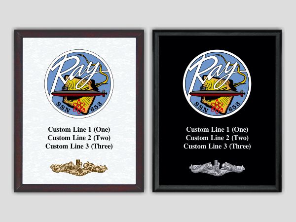 Our SSN 653 USS Ray wall plaque is a very distinct and polished item for your wall of fame. We have taken the original insignia and have completely recreated it with new, exclusive artwork in brilliant color. Say goodbye to the scan of a patch.