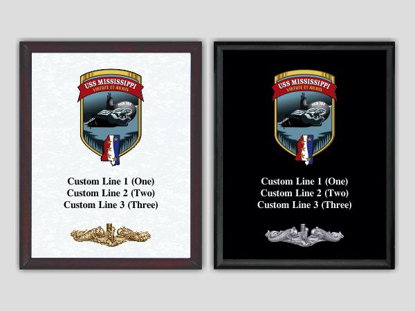 Our SSN 782 USS Mississippi wall plaque is a very distinct and polished item for your wall of fame. We have taken the original insignia and have completely recreated it with new, exclusive artwork in brilliant color. Say goodbye to the scan of a patch.